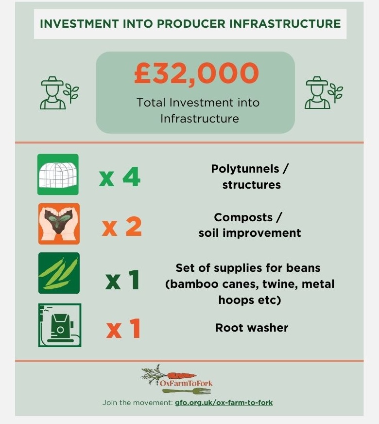 Investment into local producers’ infrastructure (see below for details): £32,000